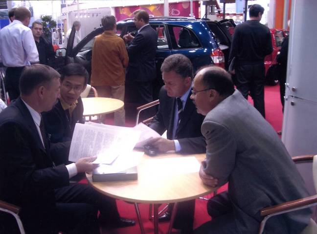 На фото: Подписание соглашения о сотрудничестве по сертификации автотранспорта -генеральный директор ФГУП НАМИ (Дмитровский полигон) Владимир Котляренко и Геннадий Сиднивец (Top-impex)